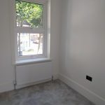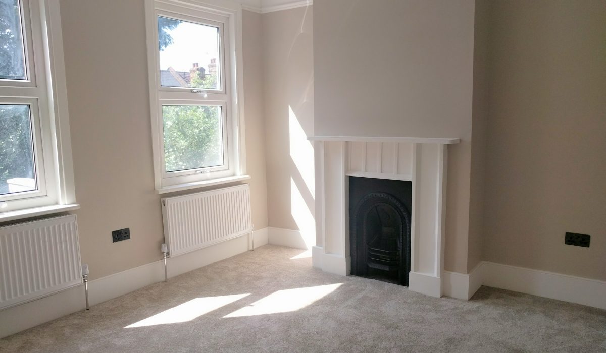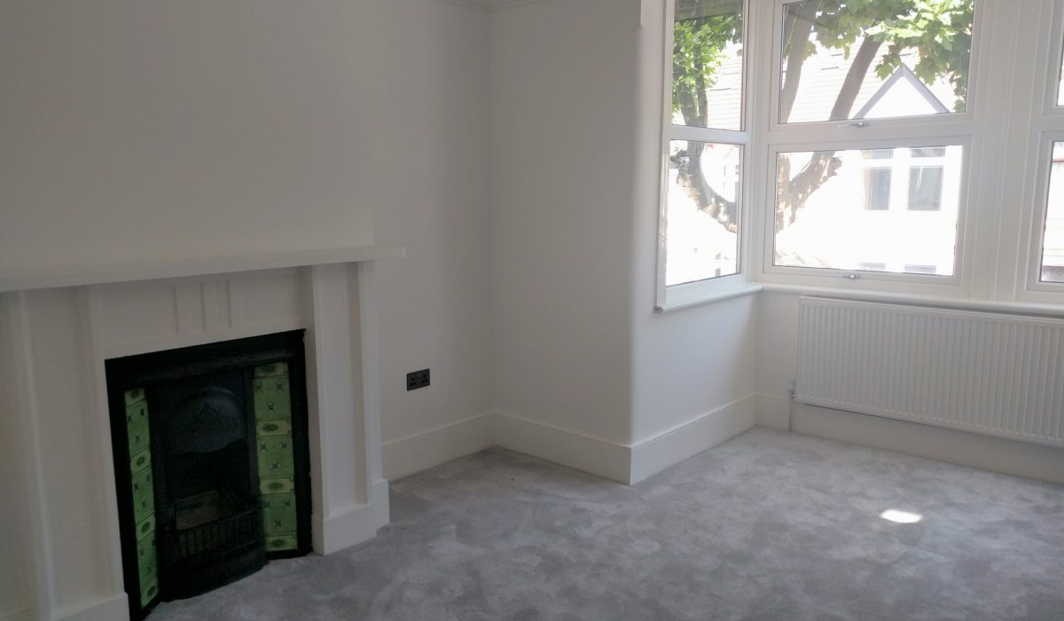 Original features place cast iron on chimney breast. Modern 3 light ceiling fitting in chrome. Fitted cupboard new fitted grey carpet, radiator.