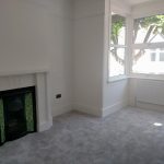 New fitted grey carpet, Lacey 5 light chandelier, radiator
