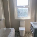Berkeley Vintage floor tiles in slate blue. Wall ceramic wall tiles. Wc.