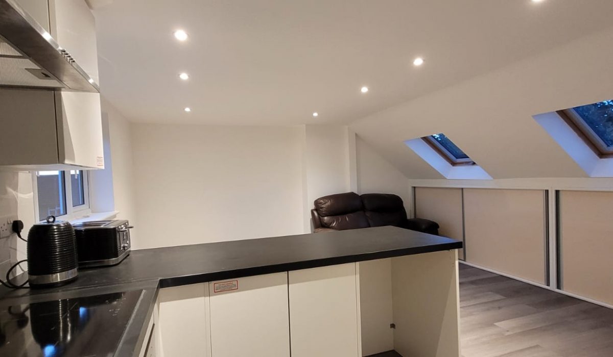 Newly renovated four-bedroom flat located in Edmonton that comes with off street parking, two bathrooms and a well-equipped kitchen.