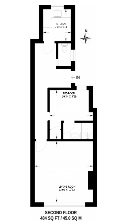 Carpeted throughout, radiator, south facing original large sash window, light fittings, various power points.