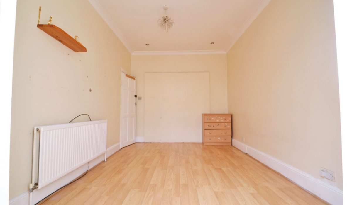 Laminate flooring throughout, high ceilings, radiator, various power points, light fittings, front aspect double glazed bay window.
