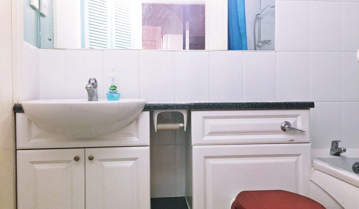 Tiled flooring throughout, part wall tiles, bath unit with power shower, low level flush with concealed cistern, wash hand basin with mixer tap, storage cupboards, shaver point, light fitting.
