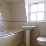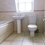Tiled flooring throughout, bath unit with shower attachment, shower cubicle with shower attachment, wash hand on pedestal with mixer tap, low level flush W/C, part tiled walls, extractor fan, light fitting, rear aspect double glazed window.