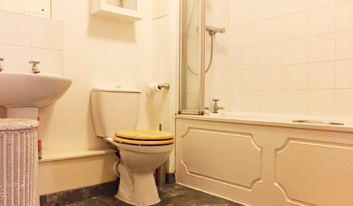 Tiled flooring throughout, part tiled walls, bath unit with shower attachment, wash hand basin with single taps, low level flush WC, heated towel rail, extractor fan, light fitting.