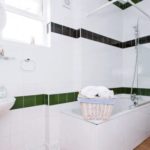 Vinyl flooring throughout, fully tiled walls, bath unit with shower attachment, low level flush WC, wash hand basin with single taps, extractor fan, side aspect double glazed window, light fitting.
