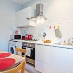 Laminate flooring throughout, range of base and wall units, work surface, stainless steel sink with mixer taps, integrated gas hob and electric oven, stainless steel extractor hood, washing machine, fridge freezer, various power points, light fittings.