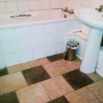 Tiled flooring throughout, bath unit with separate taps, wash hand basin with separate tap, tiled walls, light fittings.