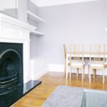 Original fire place, two sash windows to rear, original coving a rose ceiling, natural decor with period colors, light beige carpets, downlight pendant, various power points, two radiators.