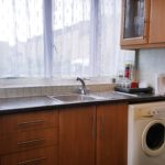 Tiled flooring, part tiled walls, dual aspect double glazed windows, eye level - base level units , free standing gas cooker, microwave, fridge freezer, washing machine, stainless steel sink with mixer tap, 3 x built in storage. Fold out breakfast table.