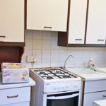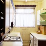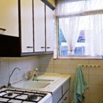 Range of base and eye-level wall units, laminate work surface, various power points, light fitting, sink with mixer tap, rear aspect double glazed windows, door leading out to side and garden, tiled walls.