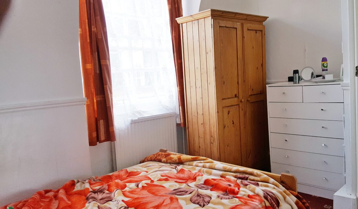 Carpeted flooring throughout, double bed, double wardrobe , double radiator, table and chairs, various power points, rear aspect sash window, light fitting with fan.