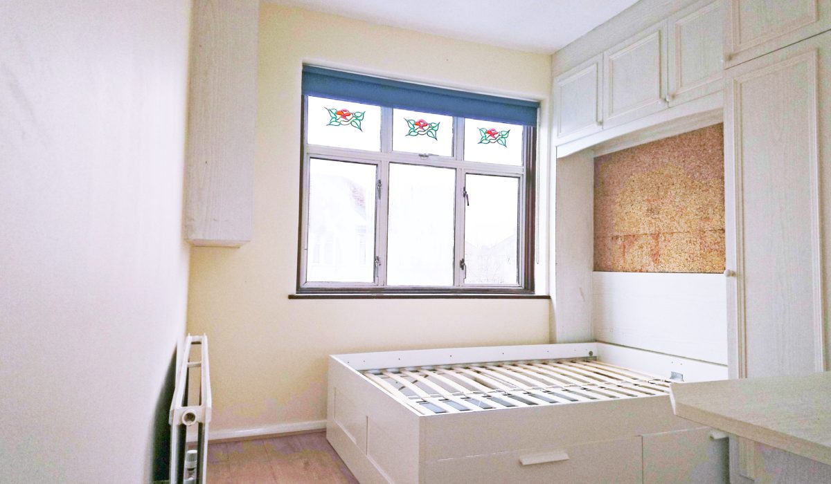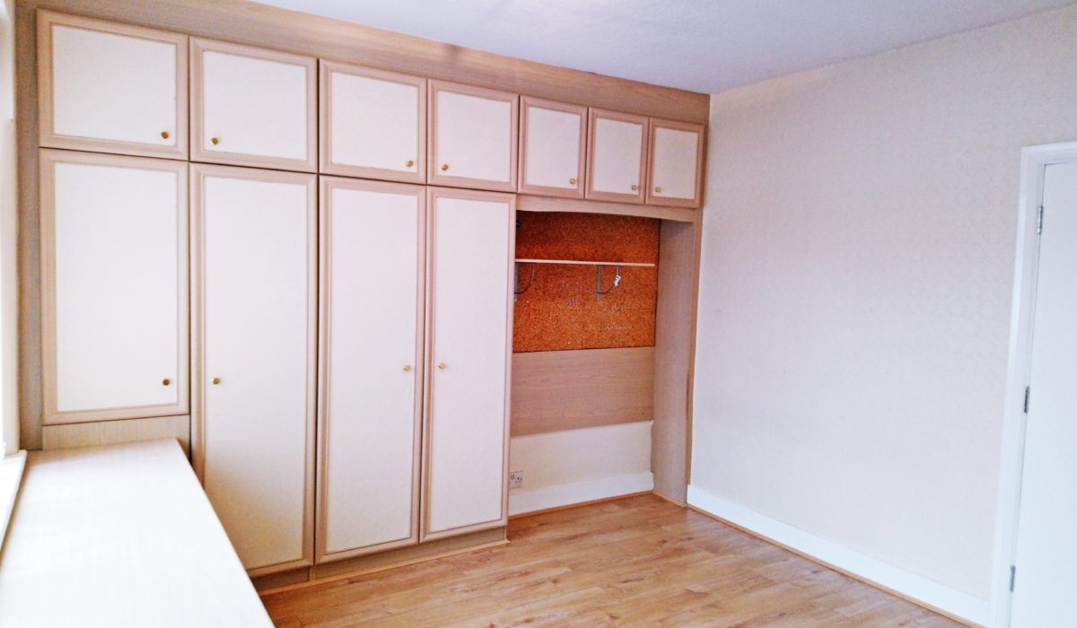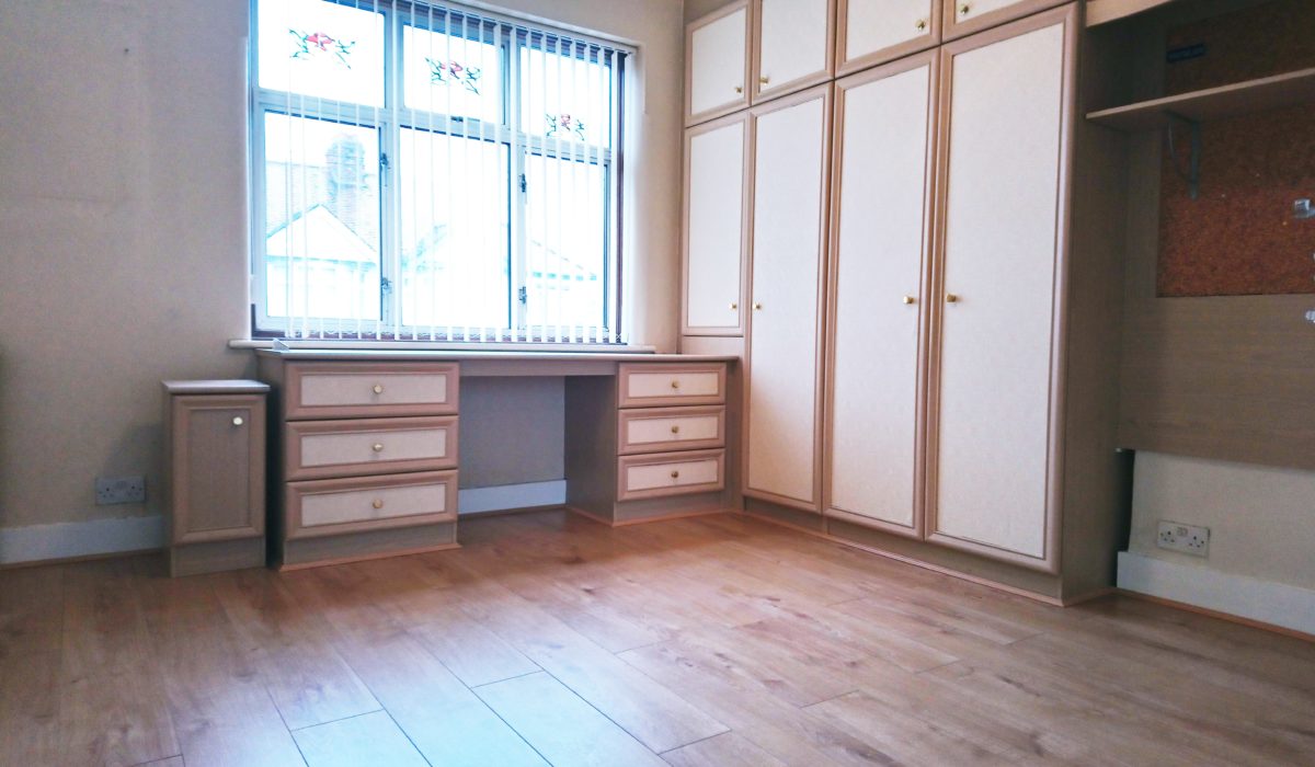 Laminate flooring throughout, built in fitted wardrobes, recess for bed, radiator, front aspect double glazed window. Light fittings, built-in cupboard housing cylinder, various power sockets.