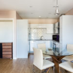 Laminate flooring throughout, various power points, light fitting, spot lights, various power points, double glazed floor to ceiling window and door leading out onto balcony.