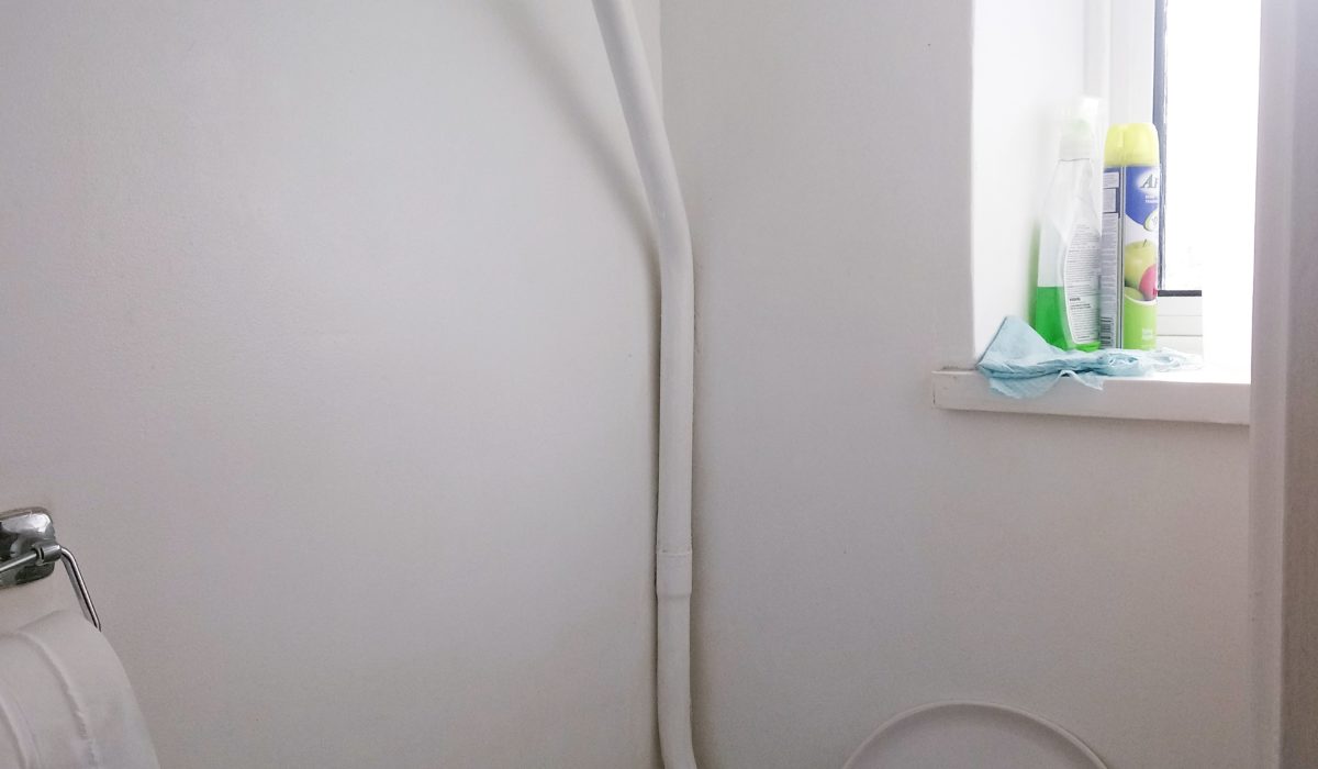 Tiled flooring, High level flush WC