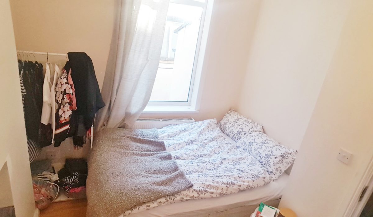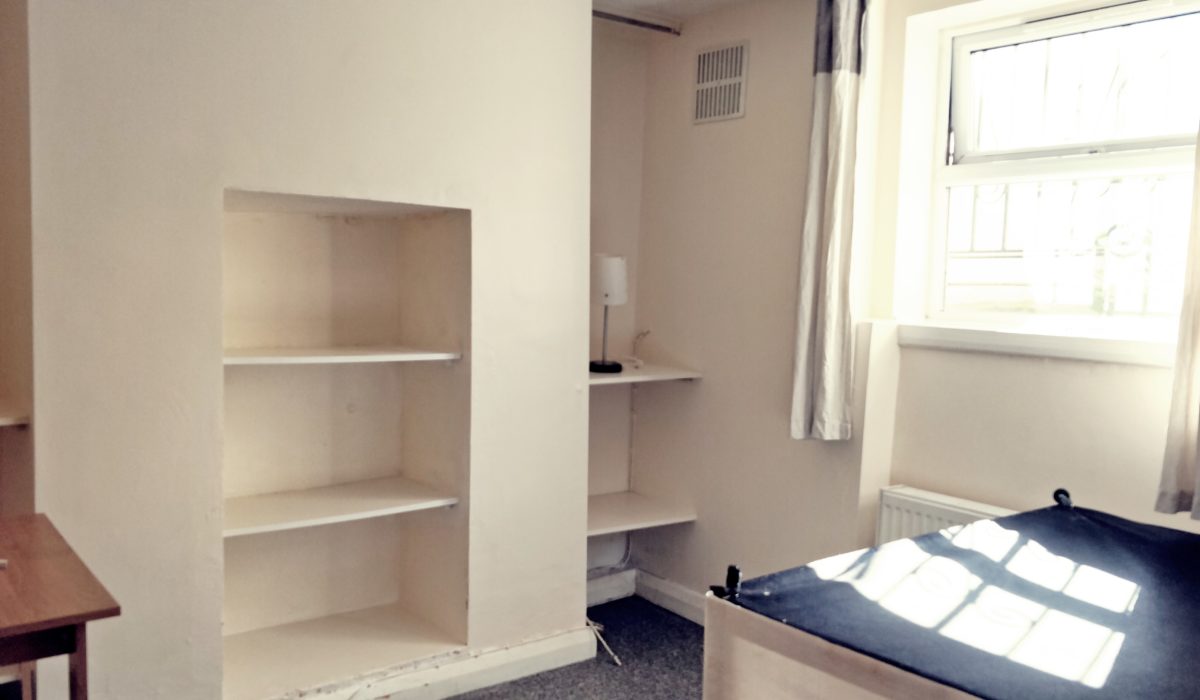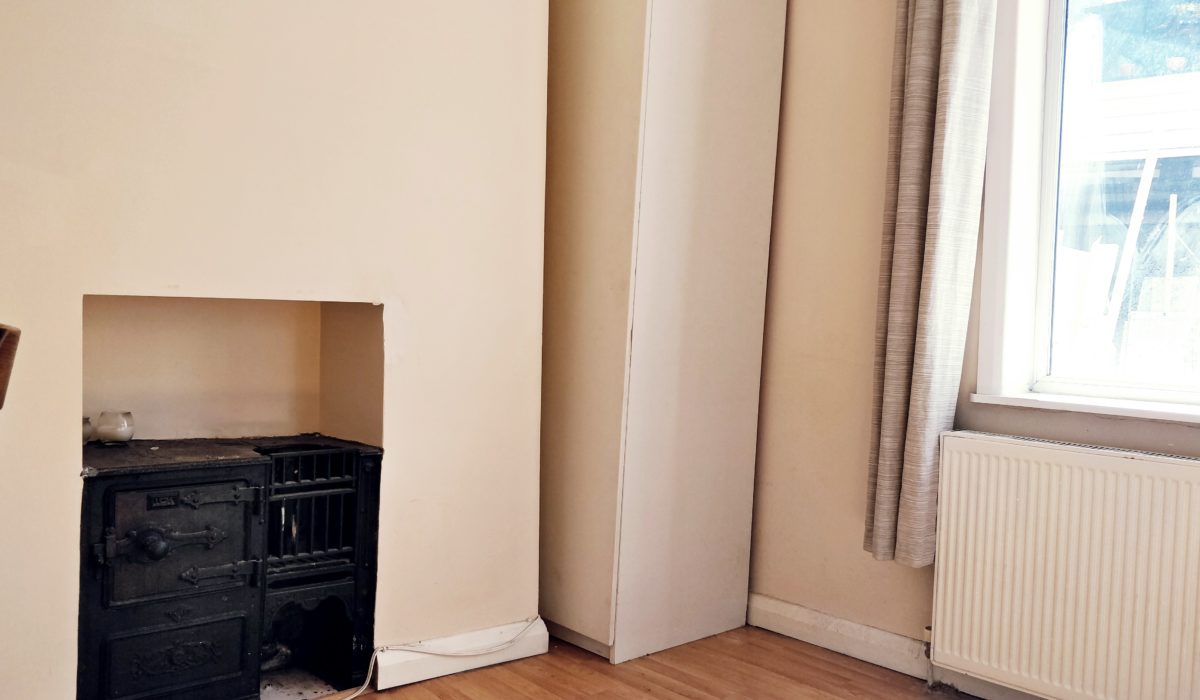 Cast iron fire feature, flooring throughout, double bed, bedside table , radiator, period feature chimney, windows to rear, various power points.
