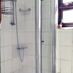 Fully tiled walls, shower cubicle, low level flush WC, double glazed window, light fitting.