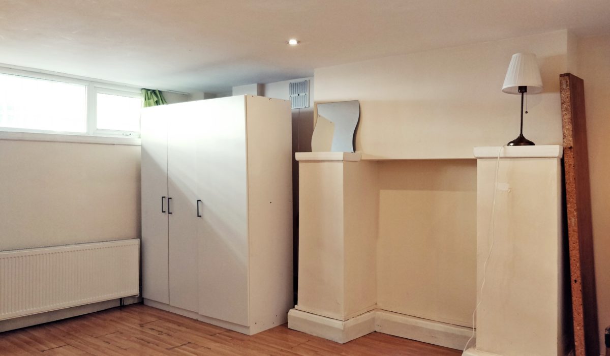 Cast iron fire feature, flooring throughout, double bed, bedside table , radiator, period feature chimney, windows to rear, various power points.