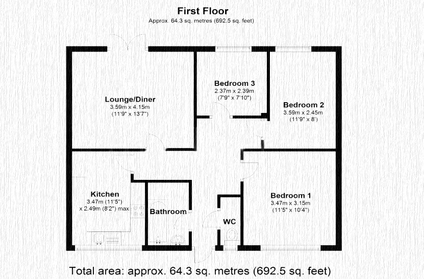 This bright and airy flat includes three good sized bedrooms, spacious reception room with access to private balcony, fitted kitchen, 2 piece bathroom suite with a separate WC.