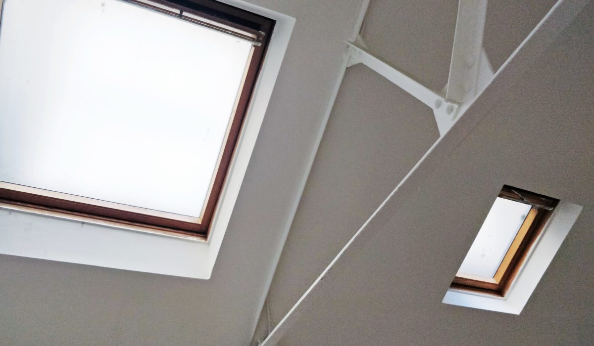 Laminate flooring throughout, high ceiling with sky-light windows, various power points.