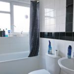 Fully tiled three piece bathroom suite. Low level flush WC, wash basin with chrome mixer tap, mixer tap bath with shower head attachment, mirror, double glazed obscured windows, towel radiator.
