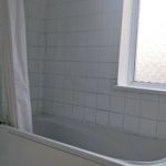 Tiled flooring and part tiled walls. Three Piece Bath suite, bathtub with shower curtain, separate tap with shower attachment, wash basin with mixer tap and under sink storage, low-level flush WC, radiator and extractor fan.