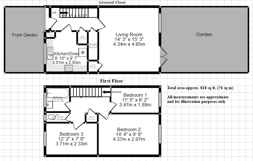 Modern three bedroom mid terrace house with no onward chain, benefiting from generous size front and back gardens for families to enjoy. The property offers a good size kitchen large enough to dine in, reception room with patio doors leading out to the rear garden, which includes a shed with ample storage space. The first floor boasts three good size bedrooms, family bathroom and separate W/C. This house would make a perfect family home.