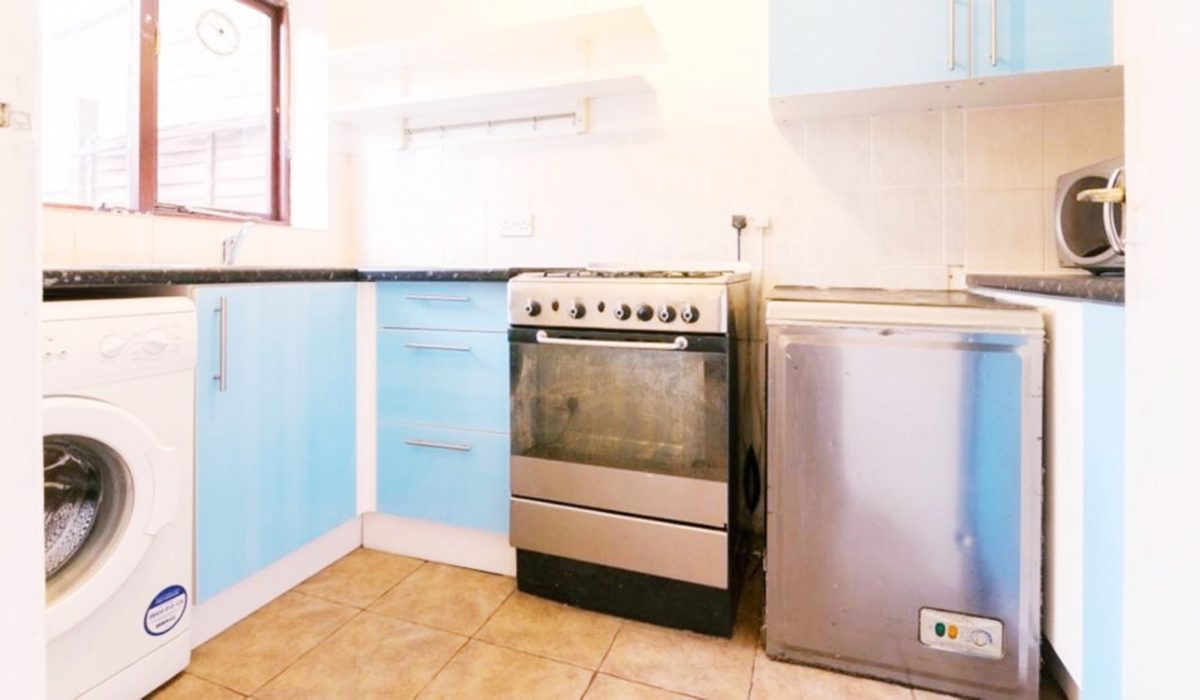 Recently fitted modern kitchen - Tiled flooring, range of base and wall units, laminate wood work surface, stainless steel sink with mixer taps, freestanding gas cooker with extractor, washing machine, refrigerator, various power points, light fittings.