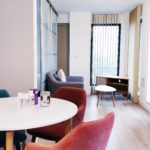 Living- Laminate throughout with underfloor heating, sofa, coffee table, dining table with chairs (STO), sliding floor to ceiling doors with storage space, large double glazed windows with floor to ceiling blinds. Various powerpoints, spot light fittings.