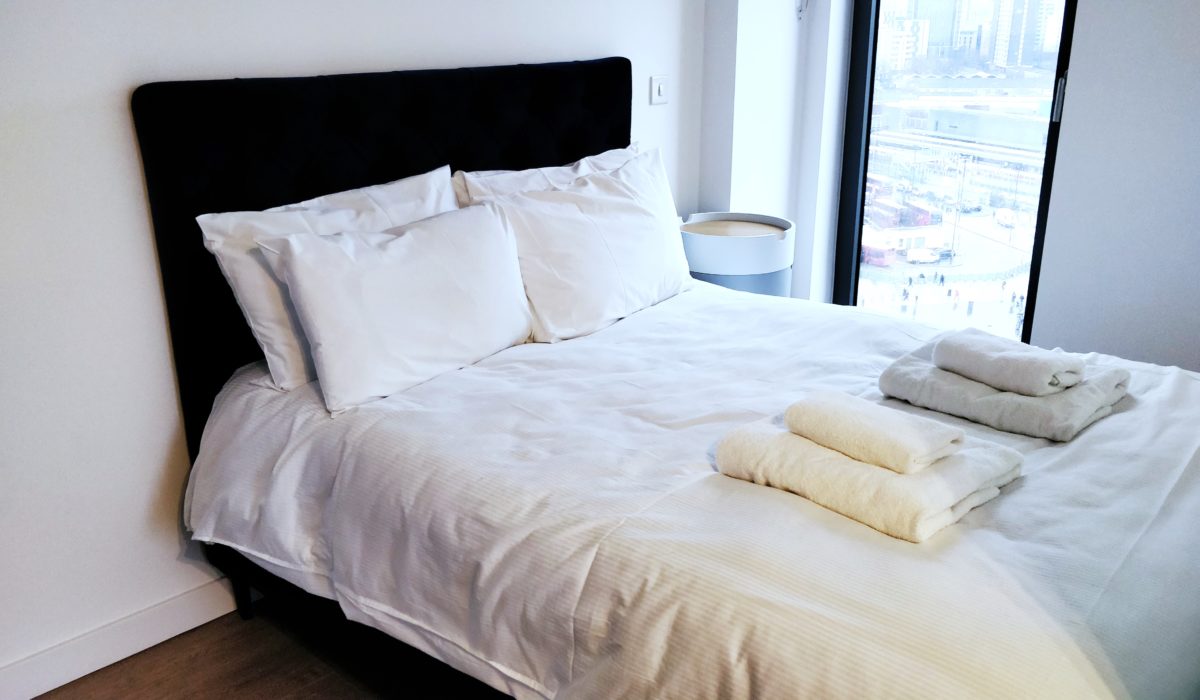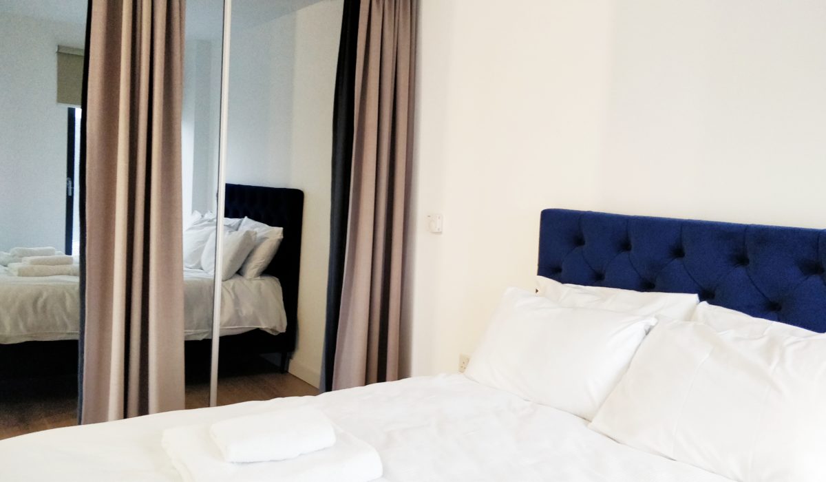 Laminate flooring with underfloor heating, double bed (STO), floor to ceiling sliding mirror fitted wardrobes, floor to ceiling double glazed windows, various power points.