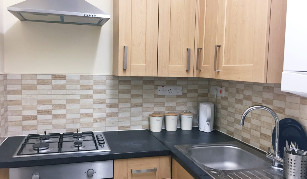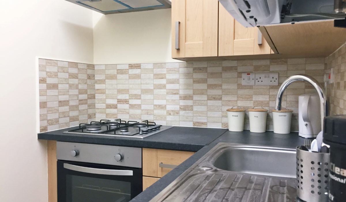 Brand new fully fitted kitchen with range of eye level wall and base units, vinyl flooring throughout, part tiled walls, washing machine, integrated gas hob and extractor. Light fittings, various power points.