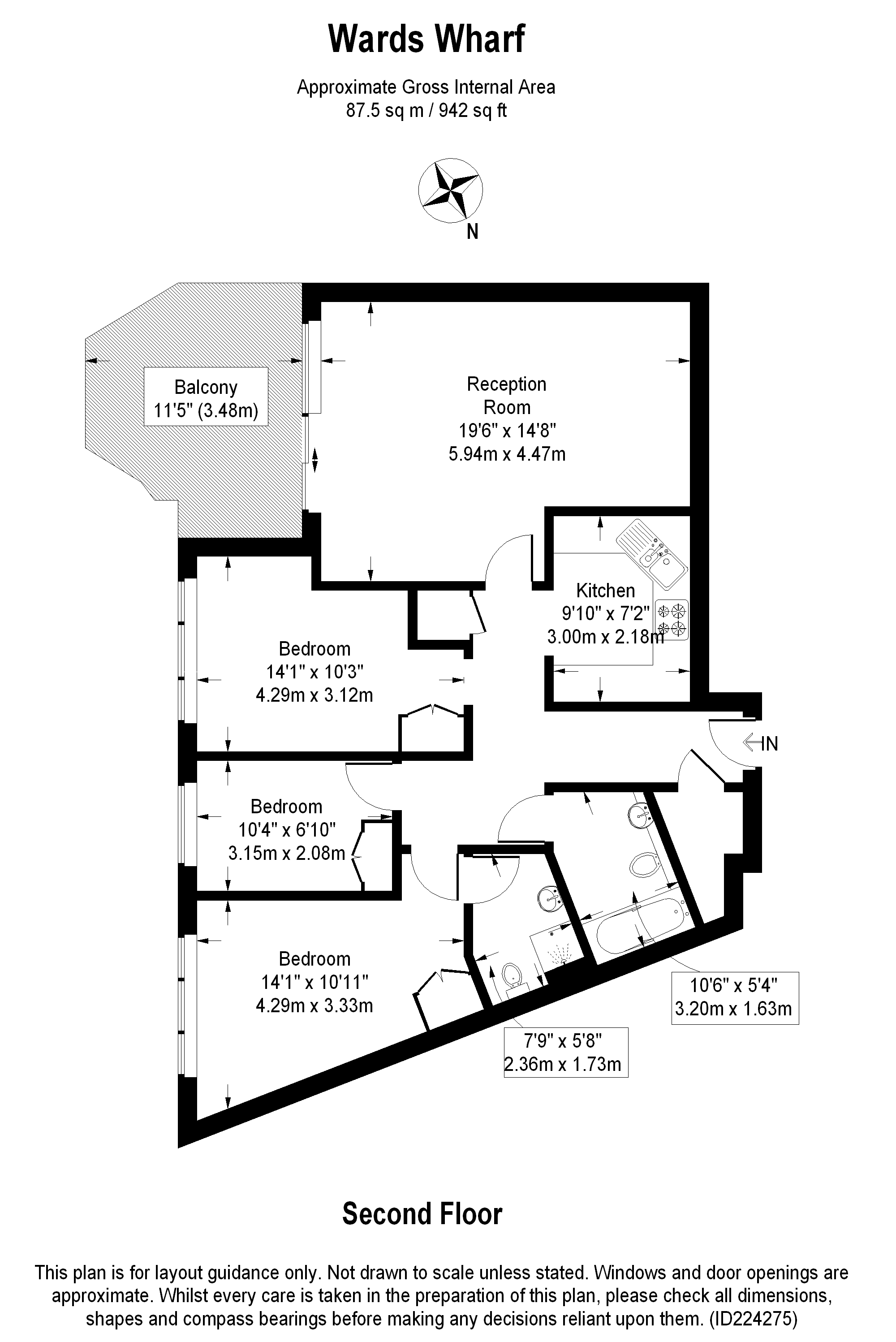 - Three bedrooms