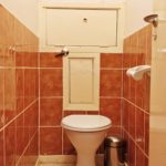 Part tiled walls, vinyl flooring, Low level flush WC.