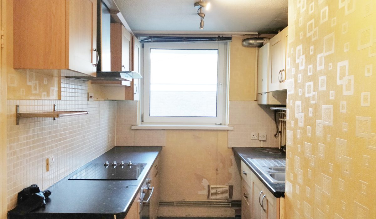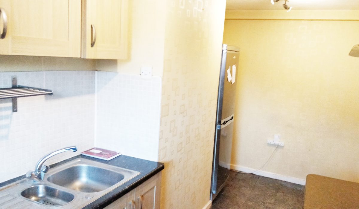 Fitted base and eye level unit, laminate worktop, built-in cooker with extractor hood, part tiled walls, vinyl flooring, stainless steel sink with mixer tap, double glazed windows, various power points.