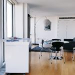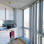 Curved shaped fitted with base and eye level units, laminate worktop, integrated electric oven and hob with extractor hood, mirrored splash-back, wood flooring with underfloor heating, stainless steel sink with mixer tap, integrated refrigerator, 2 seater sofa, dining table and chairs, freestanding storage Island, various power points. Floor to ceiling double glazed windows offering spectacular views of the London skyline and the Thames.