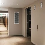 Wood flooring with underfloor heating, storage cupboard housing washing machine, water heater, access to three piece luxury bathroom.