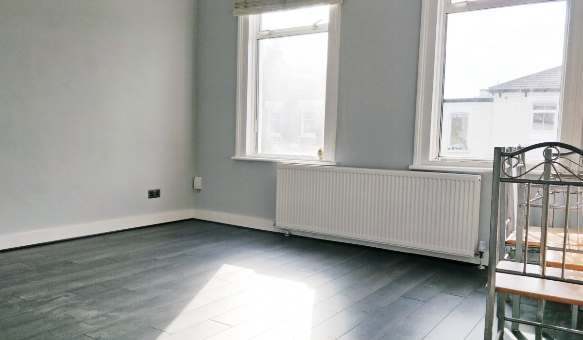 Laminate flooring, double glazed windows on both sides, radiator, light fittings and power points.