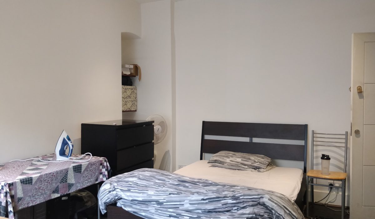Double bed, laminate flooring, dining table and chairs, double wardrobe, 2 chest drawers radiator, various power points, light fittings.