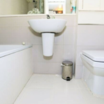 Fully tiled flooring and part tiled walls, 3 piece bathroom, floating wash hand basin with mixer tap, bathtub with mixer taps, shower attachment and splash screen, low-level flush WC, mirror, extractor fan and heated towel rail.