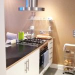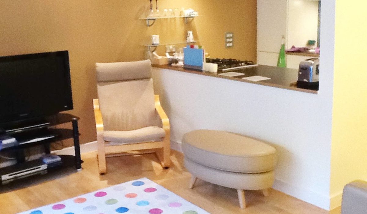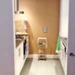 Laminate flooring, radiator, light fitting, storage cupboard housing gas meter and access to bedrooms, bathroom and kitchen/living area.