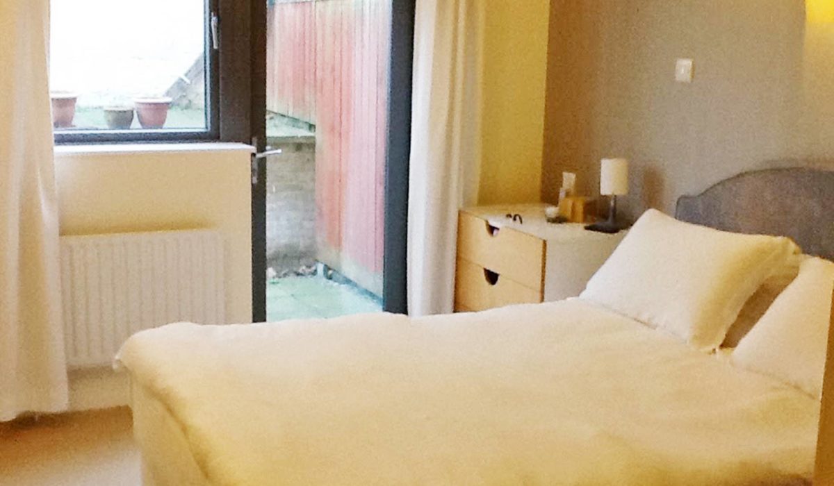 Carpeted flooring throughout, double bed, built-in wardrobe , double radiator, rear aspect double glazed window and door giving access to private garden, light fitting and various power points.