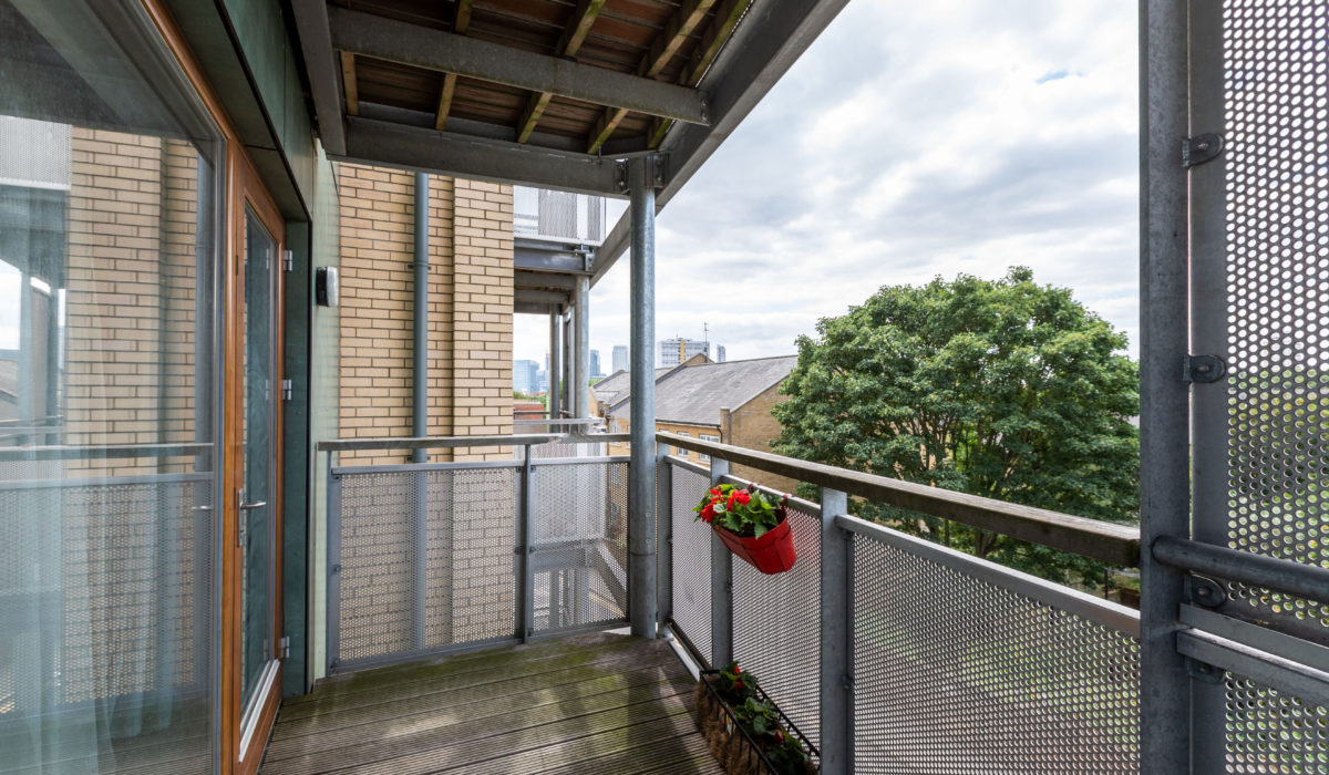 Wrap around, decked balcony with great views of Canary Wharf and The Shard.