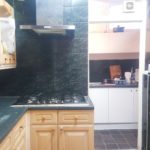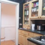 Laminate flooring throughout, range of base and wall units, integrated five burner gas hob, integrated eye-level electric oven, tiled walls throughout, stainless steel extractor fan, various power points, light fittings, sink with mixer tap.