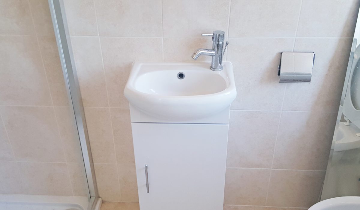Fully tiled , low level flush, newly fitted shower cubicle, electric shower attachment, hand wash basin with mixer tap, mirror storage cabinet, extractor fan, light fittings, rear aspect double glazed window, chrome towel radiator.