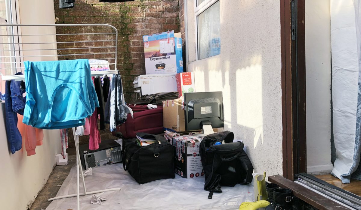 Laminate flooring throughout, various power points and light fitting, double glazed floor window and sliding door leading to a lean-to.