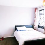 Double bed, study desk, chest of drawer, sliding double glass door wardrobe, double glazed windows, carpeted, radiator, various power sockets.