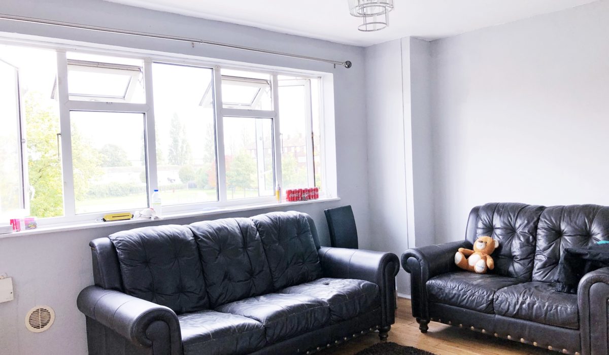 Laminate wood flooring, 3 seater and 2 seater sofa double glazed windows, double radiator, various power sockets, light fittings.