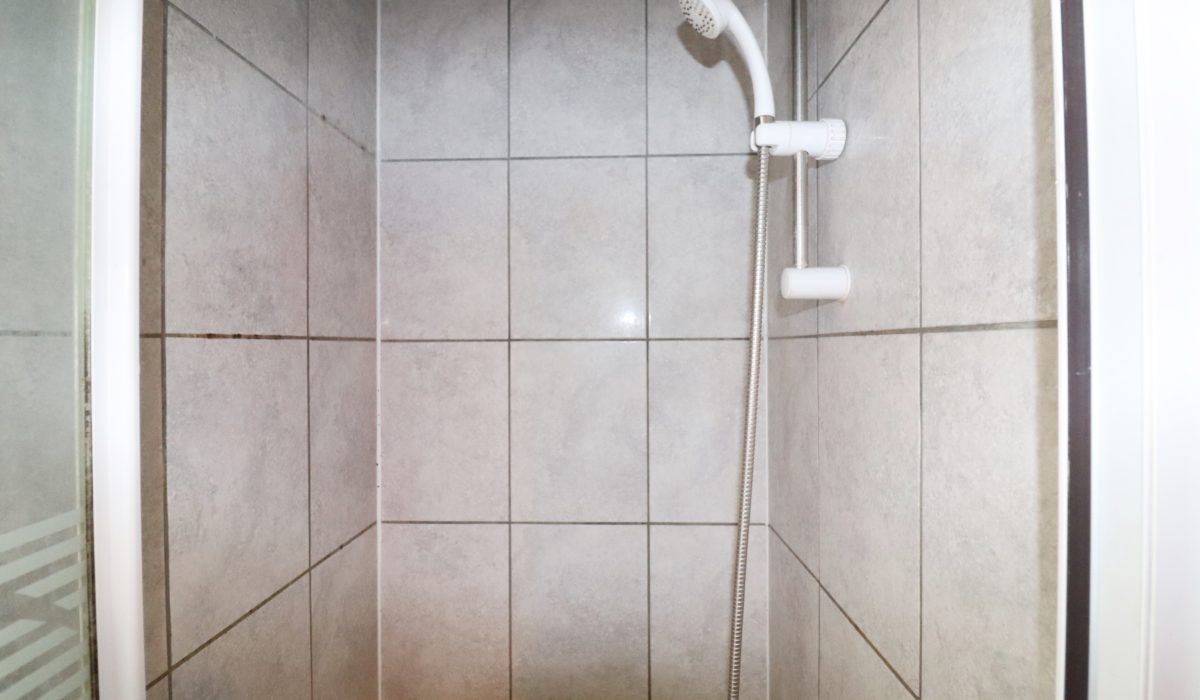 Front aspect, shower cubicle, fully tiled.