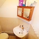 Accessed from the landing, separate from flat body. Low level flush, hand wash basin with separate taps.