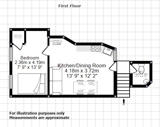 Entry from Leman Street via stairs to 1st floor. Carpeted landing giving access to separate WC and main body of the flat.